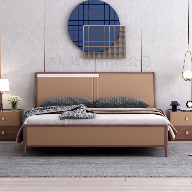 现代简约北欧轻奢床1.8米双人主卧婚床网红床1.5米实木床