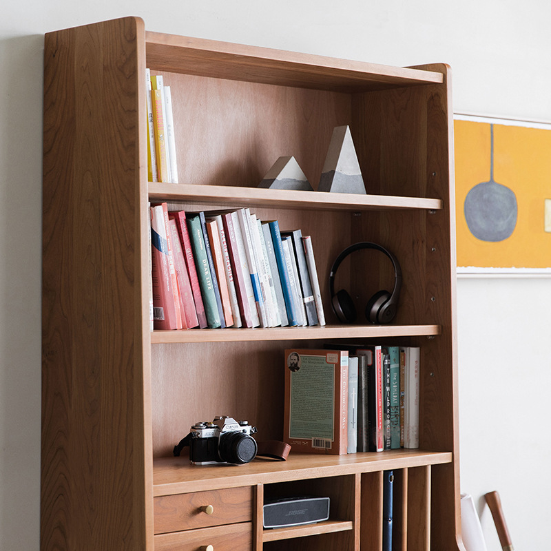 北欧实木樱桃木书柜书架置物架现代简约客厅展示柜多功能抽屉柜(图1)