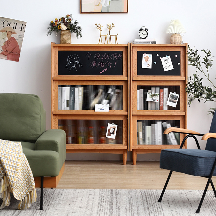 北欧全实木樱桃木书柜落地带门多功能储物柜(图1)