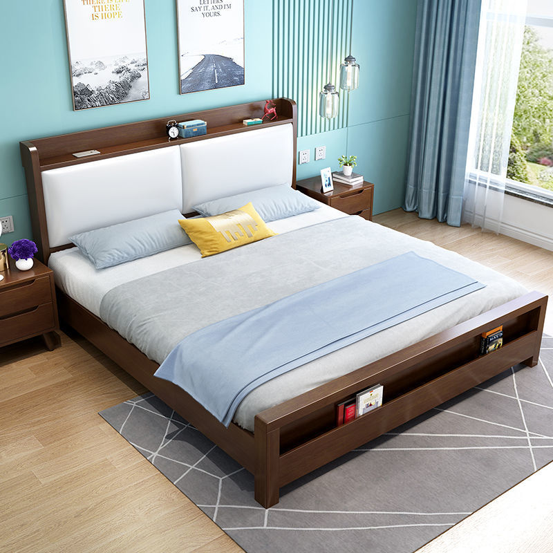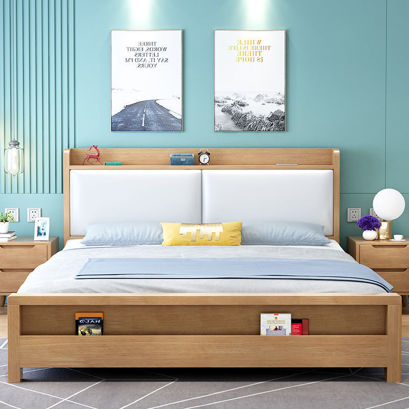 全实木北欧现代简约轻奢床主卧双人大床软包婚床主卧室单人床