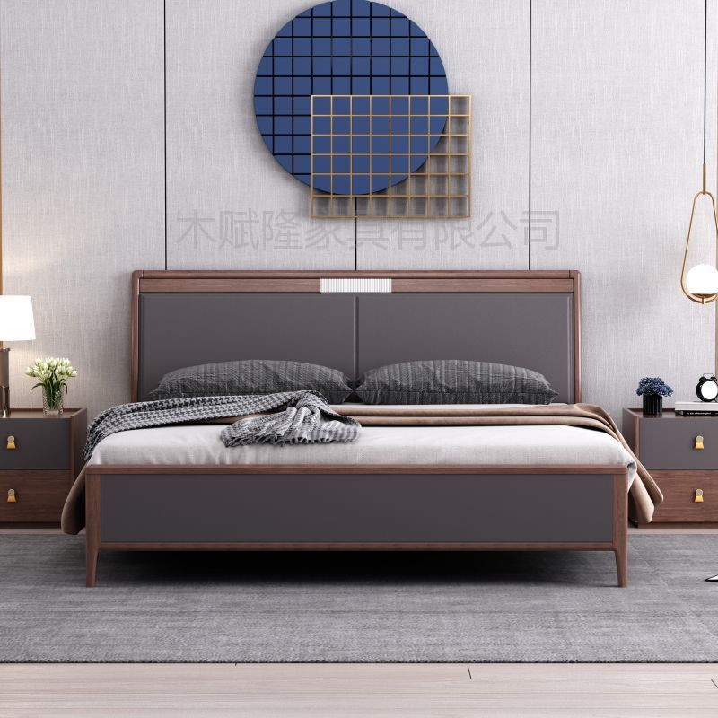 现代简约北欧轻奢床1.8米双人主卧婚床网红床1.5米实木床