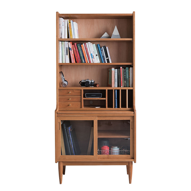 北欧实木樱桃木书柜书架置物架现代简约客厅展示柜多功能抽屉柜(图1)