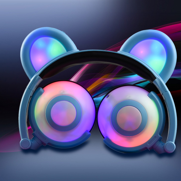 卡通熊耳朵头戴式发光可折叠手机音乐头戴耳机